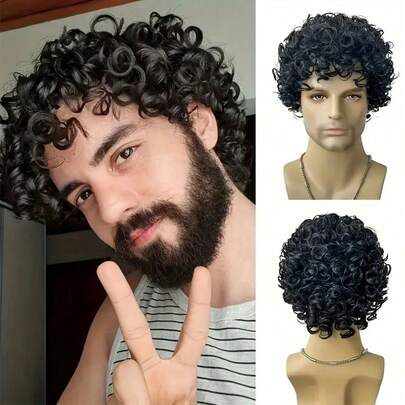 Men Wig Short Curly Afro Wigs For Men Natural Curly Layered Synthetic Replacement Wig For Male Party Cosplay Halloween - Multicolor - View 1