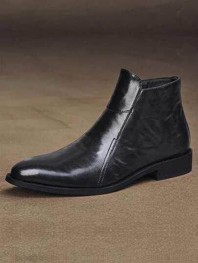 Men's Boots - Casual Business Style, Zipper Series, Rubber Sole, Suitable For Outdoor, Suitable For Spring And Autumn Outings - Black - View 1