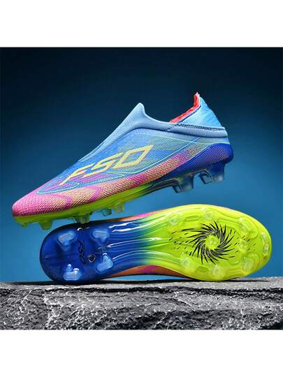 Men's & Junior AG Football Boots - Dynamic Stripe Turf Soccer Cleats With Lace-Up Lockdown | Professional-Grade Outdoor Training Shoes For Matches | High-Traction FG/AG Hybrid Studs - Green - View 1