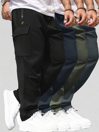 Men's Multi-Pocket Casual Sports Pants, Printed Zipper Pockets, Suitable For Outdoor Sports, Running, Daily Wear. Easter Trousers