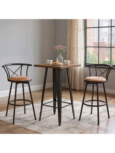 Meubles Cosy Set Of 2 360° Swivel Bar Stools, Seat Height 75.5 Cm, Suede Upholstery, Metal Frame With Footrest, Retro Design, For Kitchen Or Home Bar, Brown, 56 X 43 X 98.5 Cm - Brown - View 1