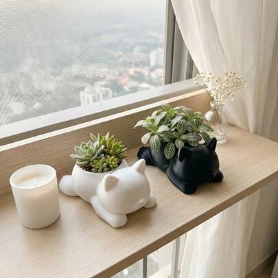 Mini Cat Shaped Flower Pot, Cute Potted Plant Decor, Small Container, Creative Planter, Garden Decor, Home Decor, Outdoor Yard Ornament, Planting Tool Accessory