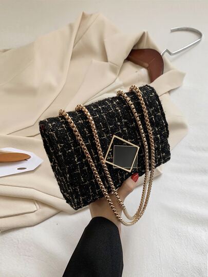 Vattentät , Lätt , Business Ledig Mini Metalldekor Klaff Kedjeväska För Teen Flickor Kvinnor College Studenter , & Vit krage Arbetare Perfekt För kontoret , College , Jobb , Business , Justerbar Rem - Svart - Visa 1