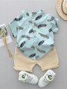 Baby Boy Summer Cartoon Allover Print Stand Collar Dinosaur Shirt och kortärmade shorts Set