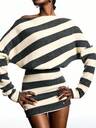 LYSMO Snygg blå randig avslappnad stickad t-shirt för kvinnor med rund hals och unika extra långa ärmar. Transparent kofta, stickad överdel för kvinnor. Transparent stickad kofta, randig kofta, stickad kofta för kvinnor, stickad topp, höst, höstkläder för kvinnor.