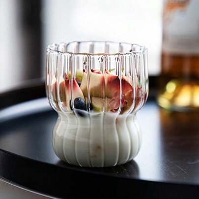 Minimalist Japanese Style High Borosilicate Glass Single Layer Cup, With Vertical Lines, Transparent Glass Flower-Shaped Cup, Suitable For Home Use, Coffee And Water Cup.