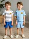1set Young Boys Tight Fit Pajamas, Tralalero Tralala Fashionable Cute Cartoon Sneaker & Blue Shark All-Over Print, Elastic Fabric Crew Neck Long Sleeve Top And Pants, Spring/Autumn Sharks Pajamas Kids Toddler Boy Pj Sets Boys Pajama Set Teens 5y Boys Pj Sets Boys Pajamas Snug Fit Tight Fit Pajamas