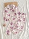 SHEIN 2pcs Girls Cartoon Puppy & Bow Print Knit Long Sleeve Top And Pants Pajama Set
