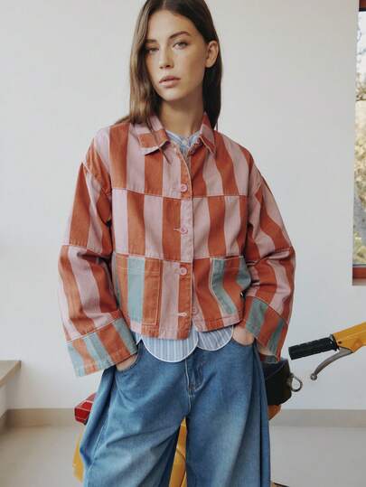 Nöista Denim Jacket With Button Front Closure And Collar In Print - Multicolor - View 6