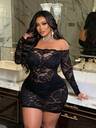 NU&NOW Plus Size Dam Sexig Långärmad Ihålig Klänning