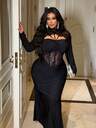 NU&NOW Plus Size Spets Sexig Skir Blommig Splice Off Shoulder Långärmad Klänning