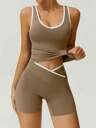 NcmRyu 2 st damer med hög midja, enfärgade, sömlösa, elastiska yoga- och fitnessshorts för utomhusbruk
