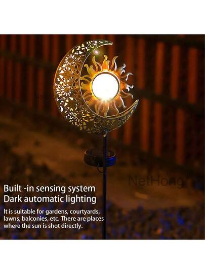 NetHong LED Solar Power Moon Sun Flame Sta.Ke Lights Outdoor Garden Path Luminous Decor - Koppar A - Visa 4
