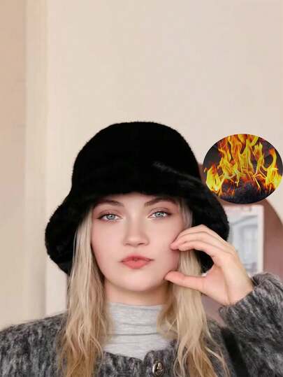 New Fashion Women's Autumn/Winter Furry Bucket Hat, Fluffy Thickened Versatile Cute Bucket Hat, Solid Color Casual Acrylic Fuzzy Decor Hat, Autumn/Winter Winter Outfits - Plush Bucket Hat - View 1