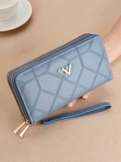 New Style Women's Wallet & Fashionable Clip & Handheld With Double Zipper Closure Phone Pocket For Women Wallet Purse Wallet Long Wallet Wristlet Wallet - Baby Blue - View 1