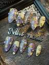10-pack mandelformade nagelset, ljuslila kattögon och aprikosfärgade tie-dye-naglar, 3D tredimensionella stålpärlor och nageltillbehör, dekorationer, handmålade metallgeometriska mönster och stjärnnageldesign, mönster i Y2K-stil, bärbart nagelkonstset, lämpligt för kvinnor att bära dagliga fester (inkluderar: en bit gelélim och en friktionsremsa) nageltillbehör naglar