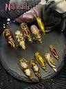 10 st. smala högklackade lösnaglar i koreansk stil, guld 3D dekorativa krombruna gröna Y2K-naglar med heltäckande täckning för att uttrycka din kärlek, europeisk stil, punk cool tjej, bruna kattögon, bohemisk prinsessstil dekorativ musikfestival nordisk heltäckande lappnagelset, lämplig för pojkar och flickor, levereras med 1 mininagelfil och 1 dubbelsidig självhäftande etikett.
