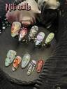 10pcs Stiletto Acrylic Nail Kit,Adopting Green&Blue&Purple Nail,Blue Cat Eyes,Purple Tie Dye Design,Hand Drawn Drop&Geometric Patterns,3D Three Dimensional Steel Ball&Chain Beads&Star Lights&Color Diamonds Fake Nail Accessories,Y2k Style Wearable NailArt Set,Suitable For Women To WearDaily Parties (With: A Piece Of JellyGlue And A Friction Strip) Nail SuppliesNails