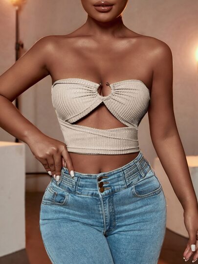 Zolique Skära Ut Slätt Sexig Topp - Aprikos - Visa 1