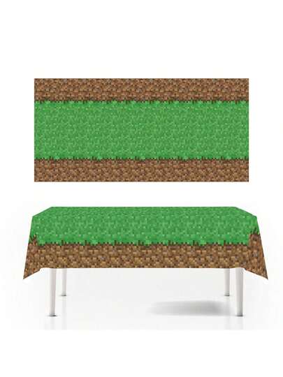 Officially Licensed Theme Party Tablecloth Pixel Wars Mining Decoration Disposable Waterproof Plastic Tablecloths - Green - View 1