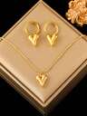 Rostfritt stål romerska siffror Strass inläggningar geometriska hänge Halsband, armband och örhängen Smyckesset, lämplig för dagligt slitage och present