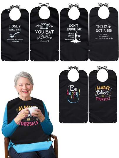 One Waterproof Adult Bib, Reusable, Machine Washable, With A Debris Catcher And Snap-Button Adjustable Neck Circumference, Suitable For Seniors, Men And Women, Providing A Protective Shield For Clean Eating. - Multicolor - View 6