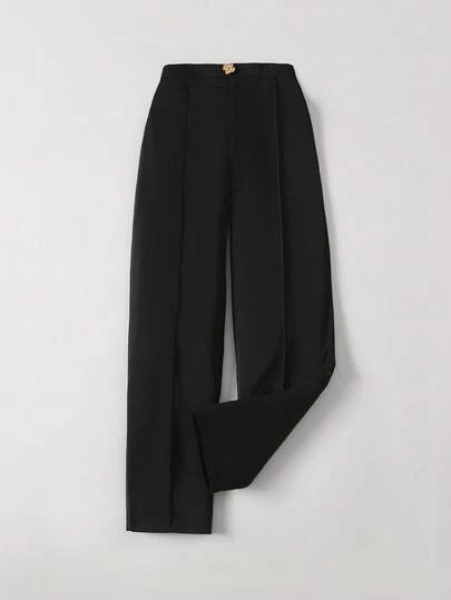 Ontre Tween Girl Gold Rose Button Black Casual Pants - Black - View 1