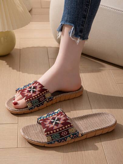Öppna tåtofflor, Platta, Lättviktiga, Slumpmässiga mönster, Bohemisk stil, Unisex, Lämplig för hemmabruk - Multifärgad - Visa 9