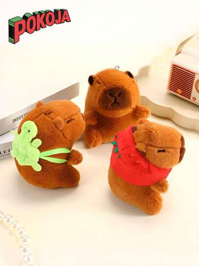 POKOJA LAND 11,5 cm söt kapybara gosedjur plyschhänge - kapybarahänge med ryggsäck, brunt mjukt tyg, nycklar, skolväskahänge, lämplig för vänner och barn, perfekt födelsedagspresent vår till sommar - Multifärgad - Visa 3