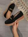 Dam Casual Andningsbara Mjuka Slip-On Loafers, Halkfria Tjocka Sulor, Enfärgade Bohemiska Ren Metall Fritidsskor, Vår/Höst