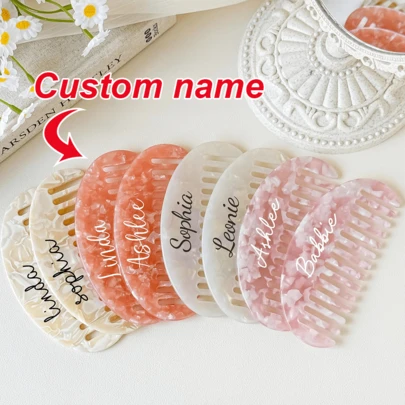 Personalized Acetate Comb,Custom Name Hair Comb,Birthday Gift,Wide Tooth Comb,Gift For Her,Wedding Party Gift,Bridesmaid Gift,Custom Name Engraved Marble Pattern Hair Accessory,Cute Bridesmaid Gift. - R-custom Wedding Comb - View 1