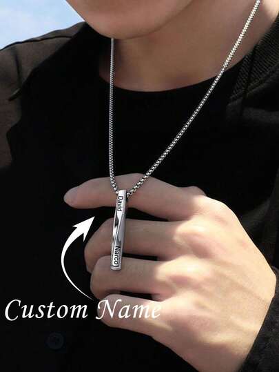 Personalized Spiral Bar Necklace, Stainless Steel Hiphop Men's Pendant, Sweater Chain Jewelry Accessory, Customized Infinite Spiral Bar Necklace - Multicolor - View 1