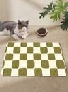 PETSIN 1pc,Retro Olive Green Checkerboard Pet Feeding Mat - Non-Slip, Absorbent Mats For Food And Water Bowl, Dispenser, Durable Polyester,Diatomite Dog & Cat Food & Water Bowl Pad,Cute Elegant Pet Placemat For Dogs, Cats, Puppy Accessories, Classic Design For Home Office Decor, All-Season Easy Care, Pet Feeding Mat.Halloween, Christmas, New Year