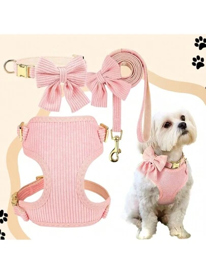 Pet Leash Set, Pet Harness, Pet Collar, Vest-Style Dog Walking Rope For Small And Medium-Sized Dogs - Coral Pink - View 1