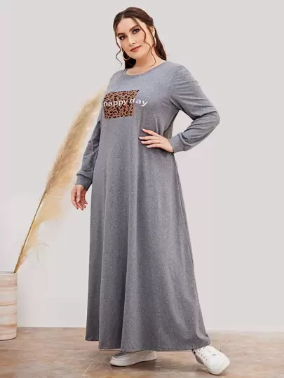 Mulvari Plus Leopard Print Tee Dress - Grey - View 1