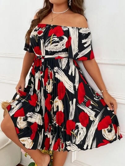 SHEIN LUNE Omgiven Veckade Blommig Boho Plus Size Klänning - Multifärgad - Visa 1