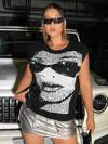 Plus Size Casual Solid Color Crew Neck Knit Sweater Vest Top