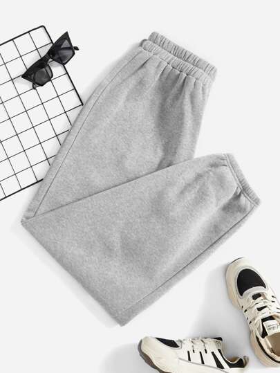 SHEIN EZwear Ficka Enkel Plus Size Mjukisbyxor - Ljusgrå - Visa 1