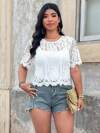 5pcs/Set Plus Size Women Casual Round Neck T-Shirts - Soft Polyester, Short Sleeve, Round Neck, Lightweight Breathable, Suitable For Spring & Summer, Breathable Clothing | Loose Fit T-Shirt | Plain Decoration, Plus Size Shirt