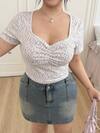 SHEIN 2025 New Arrival Women's Casual Leopard Print V-Neck Loose Short Sleeve T-Shirt