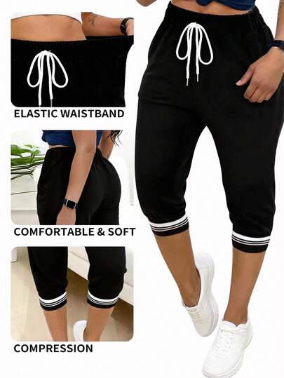 Plus Size Women Heart Print Tie Waist Capri Pants