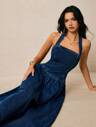 Poéselle Elegant enfärgad ärmlös klänning i jacquard med rygg och mönster för dam