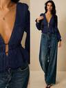 Poéselle Damjeansskjorta, åtsittande kortärmad jeansskjorta med knappar framtill, jeanstopp, kortärmad jeansjacka, jeansskjorta, kortärmad jeanstopp, västerländsk jeanstopp för kvinnor, mörkblå jeanstopp, avslappnad pendling. jul