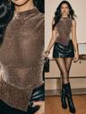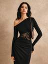 Poéselle Bodysuit i kontrastspets för kvinnor med tunn ärm, slim fit och sexig