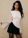 Poéselle Damtopp med enkel, enfärgad, V-ringad, lanternärm och knut framtill, vår/höst, casual pendlartopp