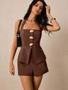Poéselle Enfärgad mockakjol med fuskfickor för kvinnor, snygg minikjol