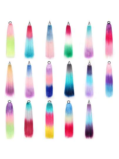 Ponytail Extension With Hair Tie Colored Hair Extensions For Braiding Colorful Ombre Pony Tail Hair Extensions For Braids Rainbow Festival Rave Crazy Hair Festivals Weddings Proms Daily Use - Multicolor - View 26