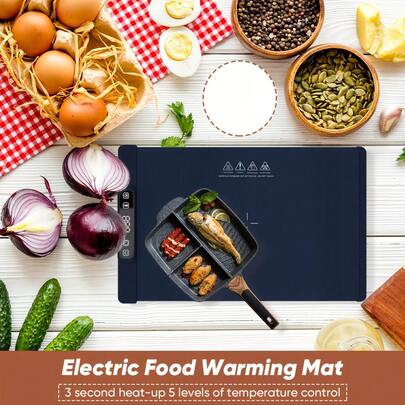 Portable Food Warmer Pad, Electric Retractable Warming Tray With Real-Time Temperature Display, 5-Level Temperature Adjustment, Multifunctional Food Warmer For Party, Buffet, Gathering, Food Heating Pad, Food Warmer Pad - Blue - View 1
