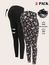SHEIN Maternity Solid Color High Waist Fitted Flare Leggings For Women
