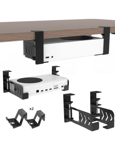Premium Under-Desk Steel Clamp Mount For Xbo.X Series S – Tool-Free No-Drill Installation, Reinforced Heavy-Gauge Steel Bracket With Protective Silicone Padding & 2 Bonus Controller Holders For Secure, Space-Optimized Gaming Setup - Multicolor - View 1